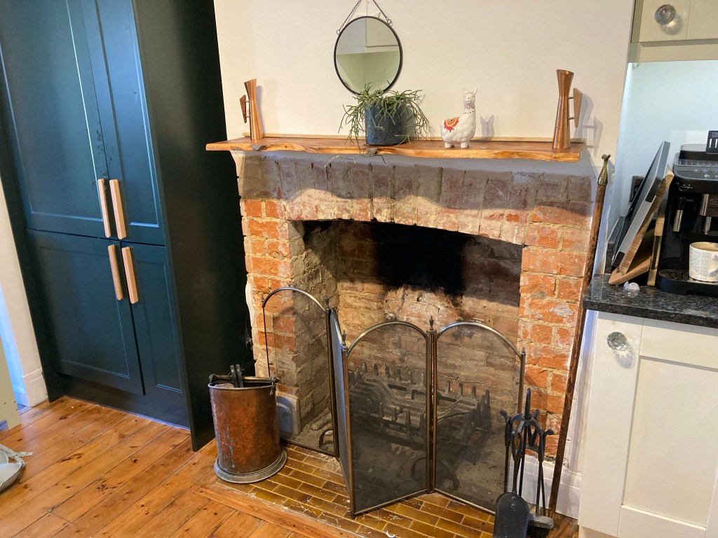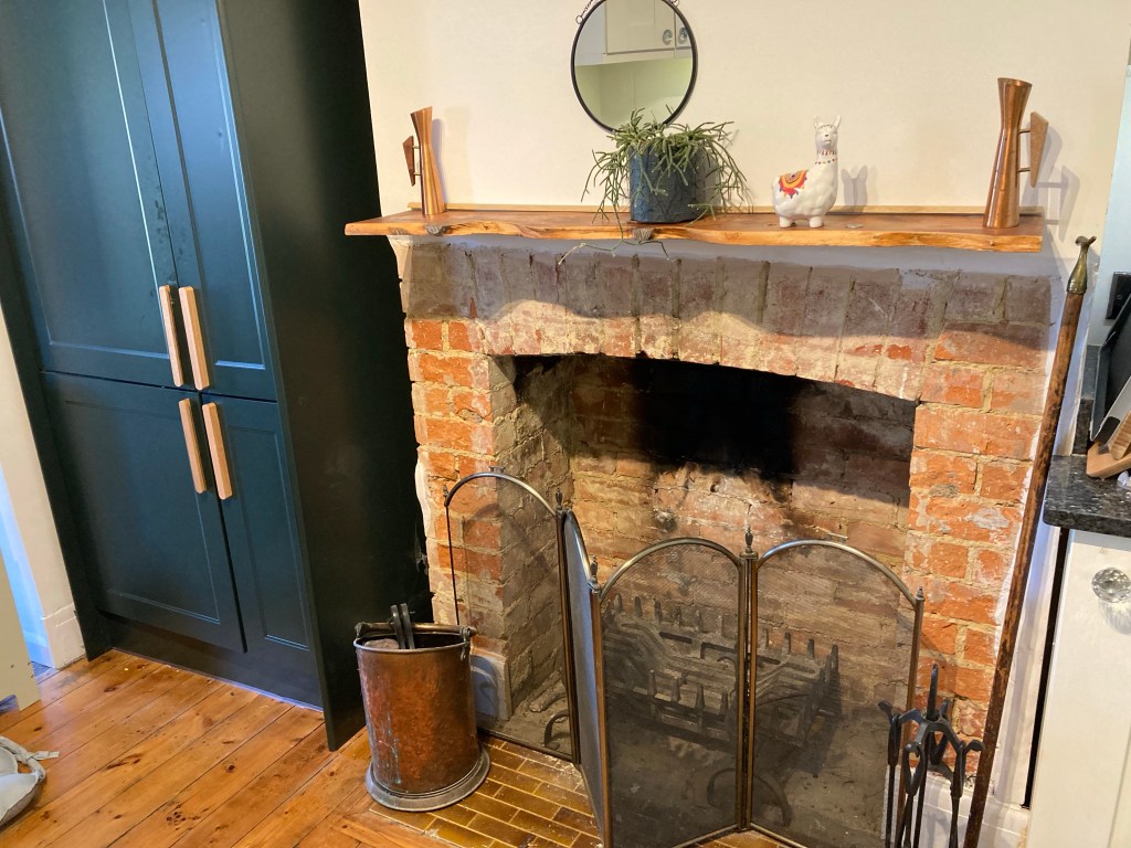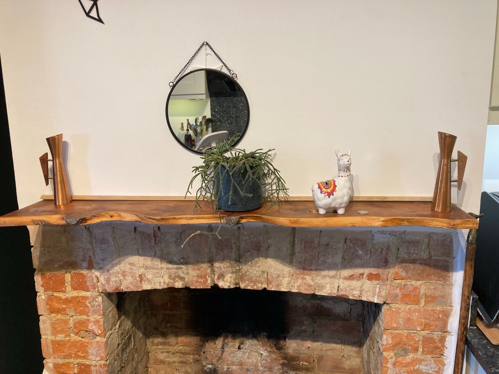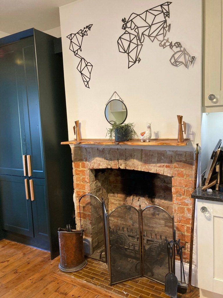 For the eagle-eyed this wooden mantlepiece may look familiar. It was the windowsill in my old bathroom. I had sanded and cut to fit the space- https://coolupcycled.com/2021/05/31/bathroom/ Upcycled. Used again as a floating mantelpiece with some brackets.