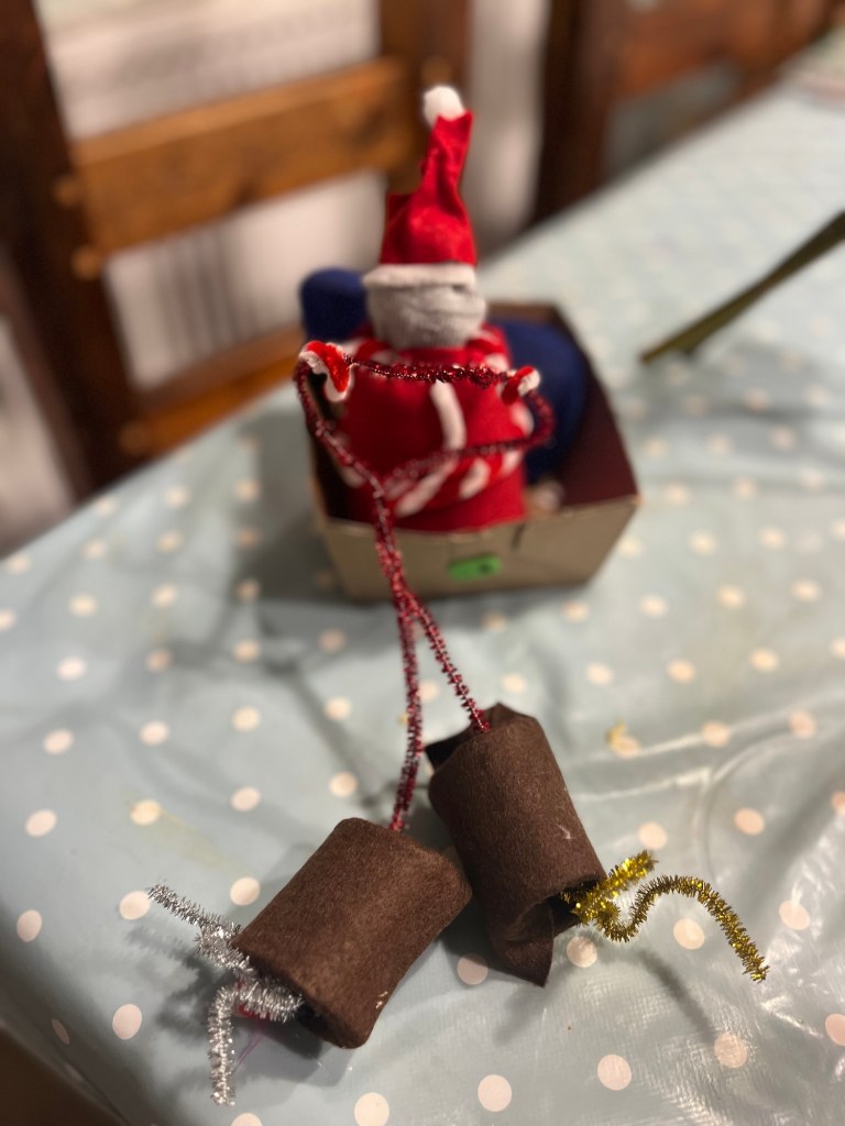 This time around, it’s been all about the little things — perfect for making together with the children. We’ve stuck to some festive classics like paper chains, alongside a few more creative projects, including a sock-and-coffee-cup Santa and toilet roll reindeer.