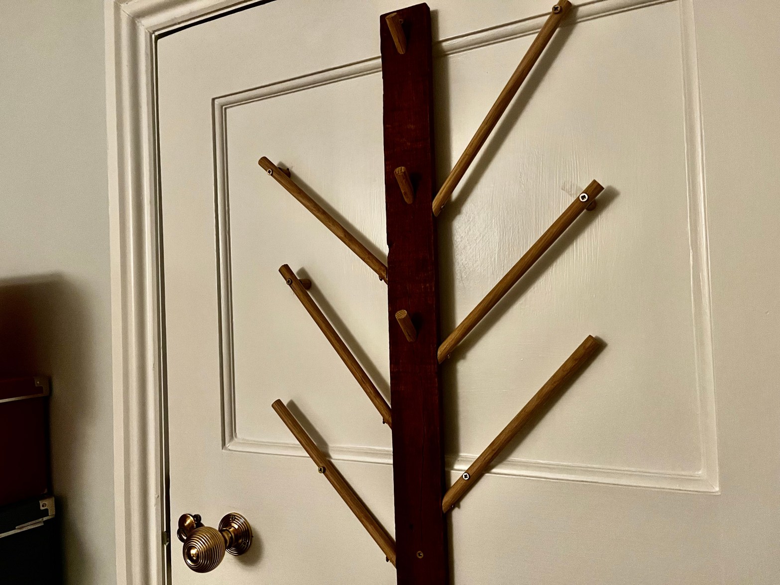 When we bought this house it had some of the most ugly coat racks on the backs of doors. Gradually as we’ve decorated they’ve been removed. For our bedroom door I’ve chosen to use some left over oak rods and a hardwood slat from a wood reclamation yard to make a tree shaped coat rail.Continue reading “Tree coat rack”